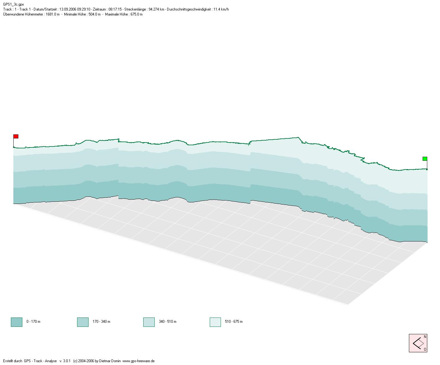 Auf dem GPS-Track wird diese Strecke mit einer geraden Linie dargestellt.